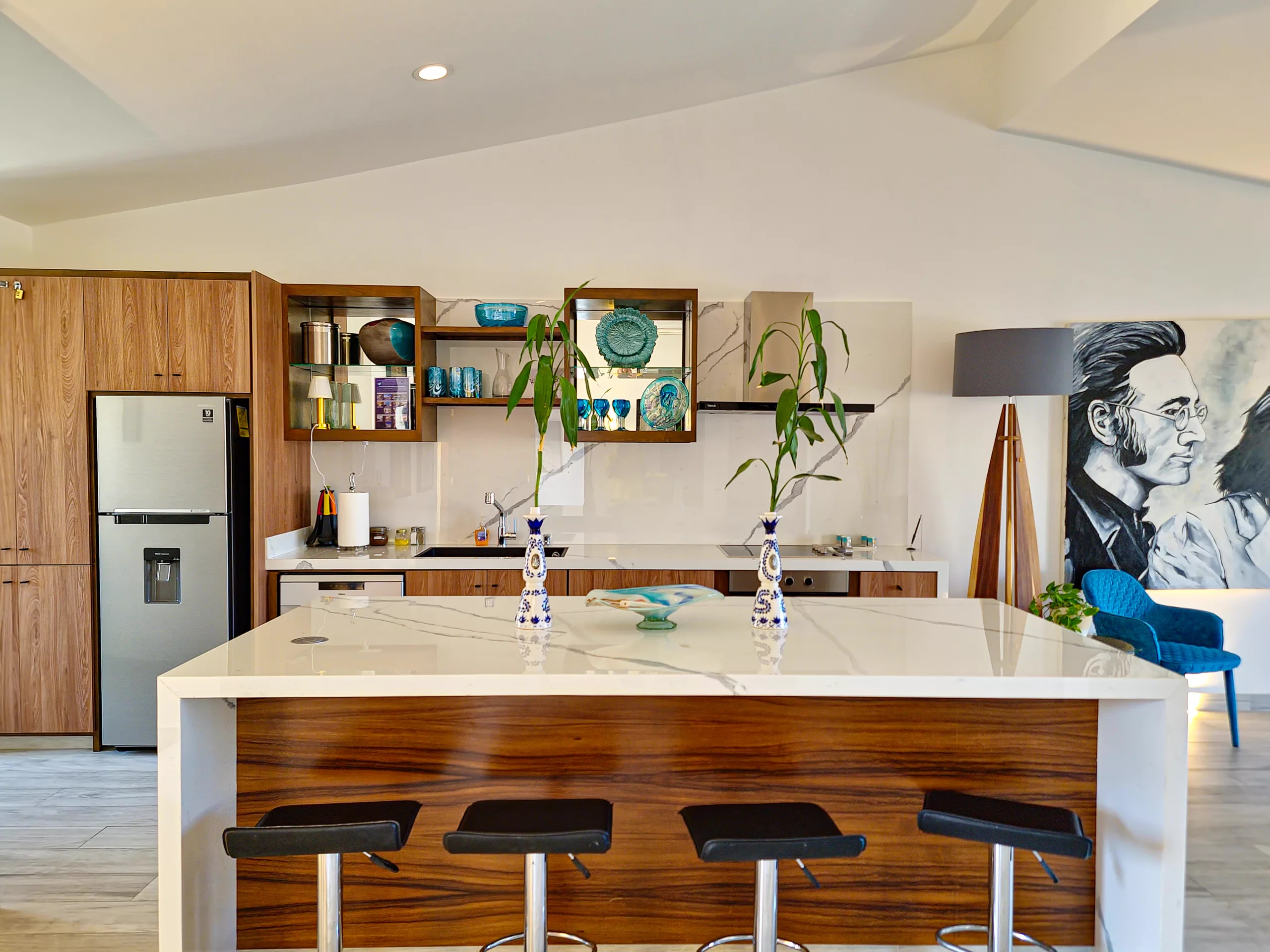 - En suite washer and dryer, in-room safe with a personal code, water cooler with purified water, high-speed WIFI internet access, telephone for local calls.Open concept fully equipped kitchen with a beautiful kitchen island with seating for 4.