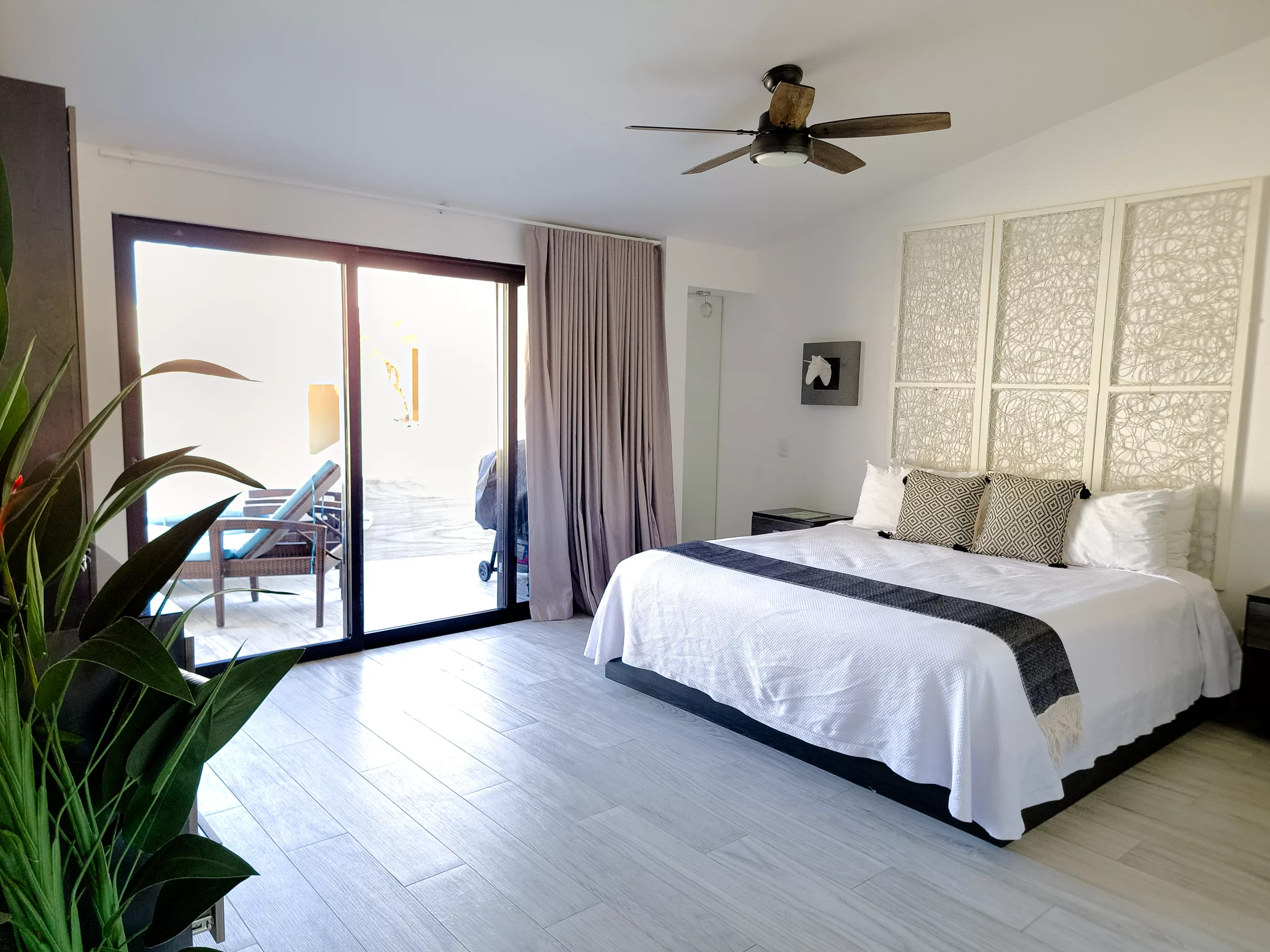 - The private balcony offers stunning views of the Pacific Ocean. Enjoy the majestic sunsets while relaxing in the lounge chairs or eating your breakfast in the garden table.