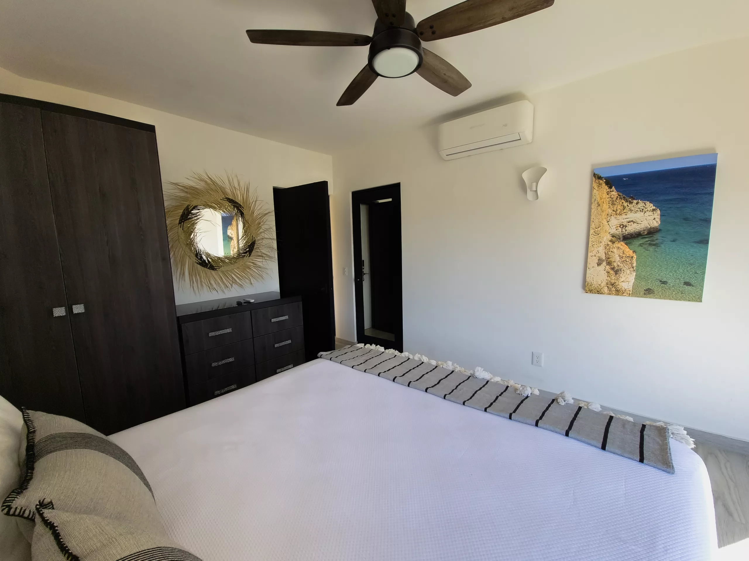 - The master bedroom features a king-size bed comfortable to sleep. Full and perfect size bathroom, flat screen TV with streaming system, and views of the Pacific Ocean.