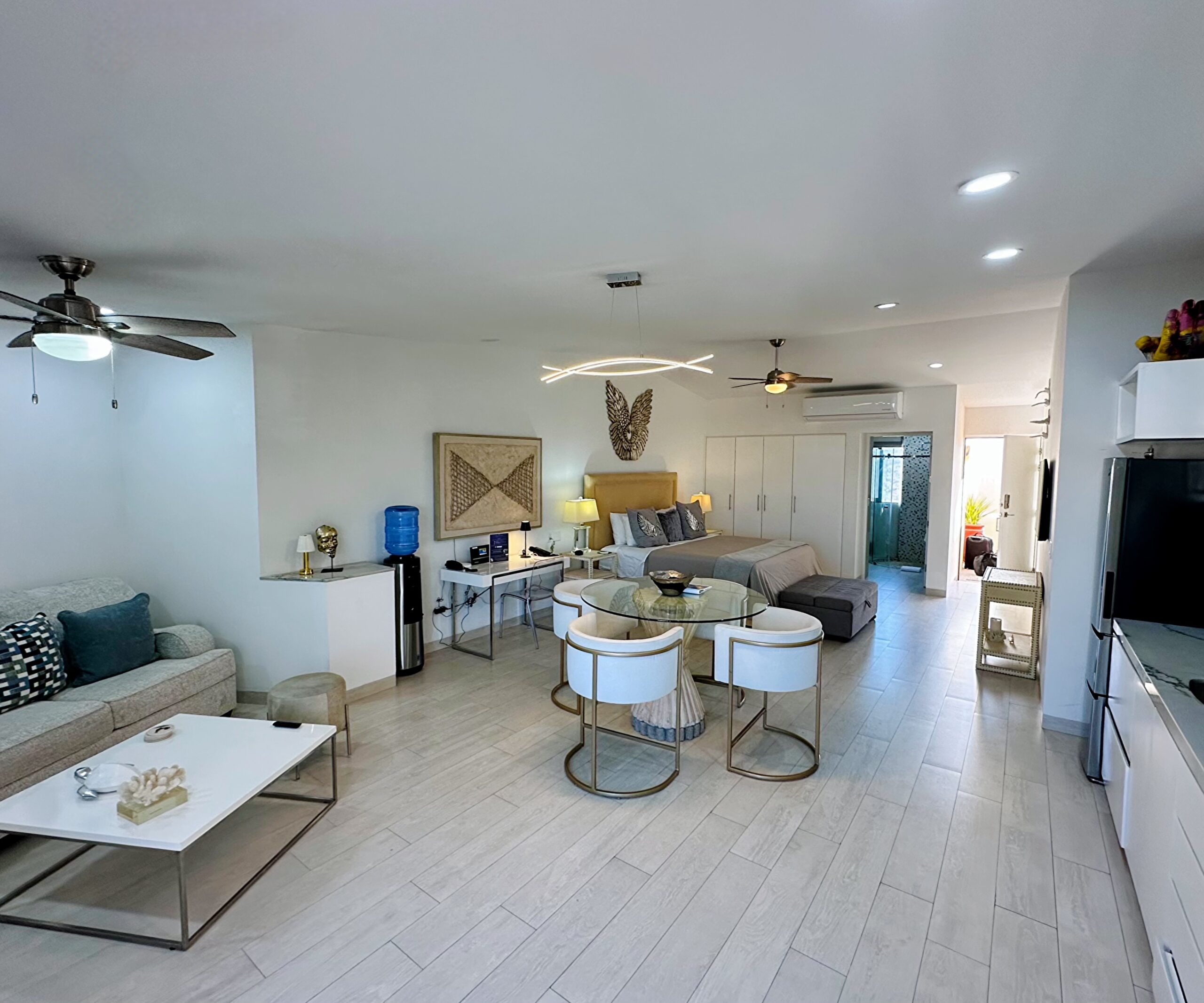 This studio has been completely remodeled with luxurious details, high-end appliances, and top-quality furnishings. Every detail of this elegant space has been meticulously and personally selected by the owner. This is a gem in Cabo!